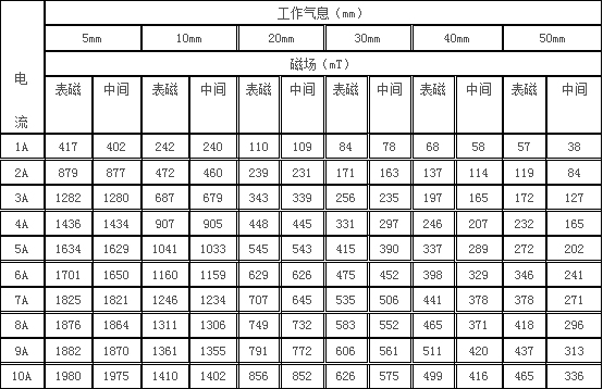 5、剩 磁:≤5mT 工作气隙10mm时