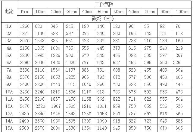 PEM-8005SH型电磁铁磁场工作气隙磁场是根据电磁感应原理,电流源对励磁线包供直流电流并由导磁回路引导产生强磁场,调节气隙大小,改变极面直径,调整工作电流均可改变气隙磁场的大小。